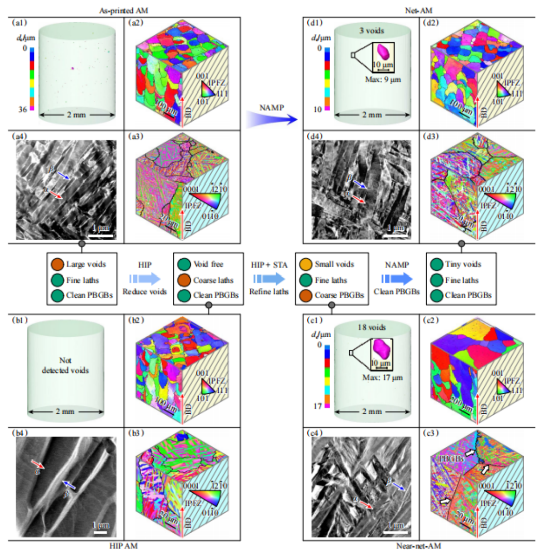 消除缺陷:中科院金属研究所Qu团队开发无孔洞增材技术,使Ti-6Al-4V钛合金抗疲劳强度提升106%,如图5,适用于航空航天。